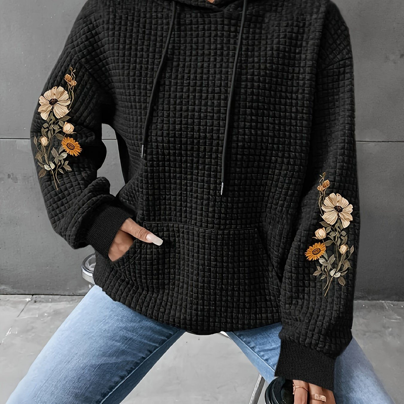 Add a splash of fun to your wardrobe with the Black Floral Print Waffle Hoodie. This stylish, trendy hoodie features a cozy waffle knit and a bold floral design that stands out. Perfect for staying comfy while expressing your playful side, it’s your go-to piece for casual hangouts or relaxed weekends.